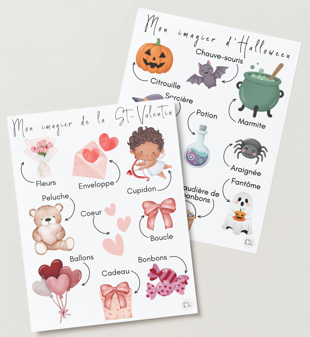 Voici plusieurs fiches d’imagier sur différents thèmes, une belle façon d’enrichir le vocabulaire des enfants tout en s’amusant. Ces supports visuels colorés permettent d’aborder divers univers.